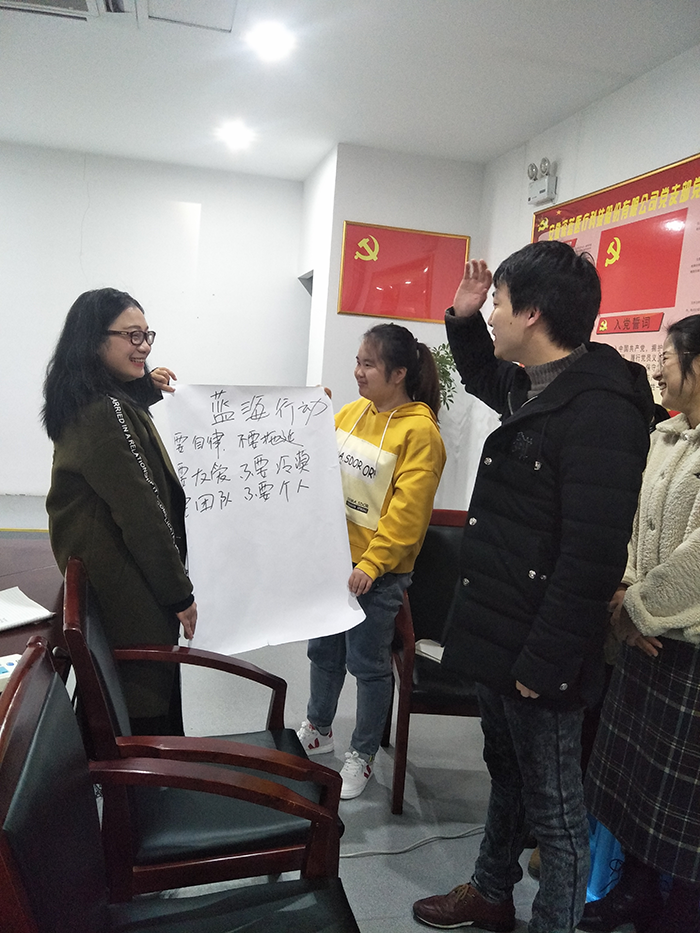 培訓期間,現場采用PK積分的競爭方式,充分調動了各小組組員的合作性,為了不落伍不落隊,紛紛參與到學習互動中,積極回答老師問題,團隊合作是每個深藍人具備的崇高精神。朱老師結合實際教案,寓教于樂,生動詼諧的教學方式使員工輕松地掌握所學知識。