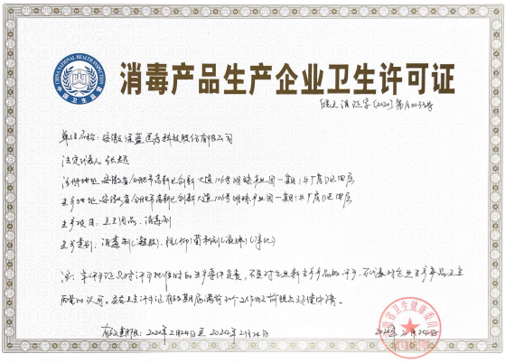 深藍醫療緊急獲批頒發消毒產品生產企業 衛生許可證、產品應急上市