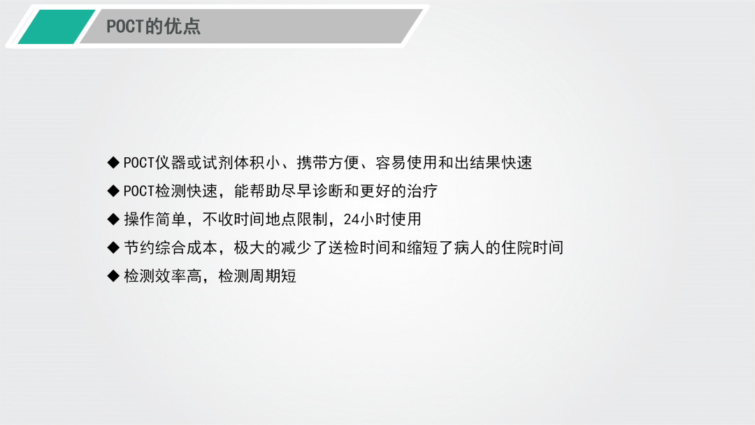 POCT是Point-of-CareTesting,中文一般譯成“床邊檢測”。NACB(美國國家臨床生化科學院)對POCT的定義是——在接近病人治療處,由未接受臨床實驗室學科訓練的專業臨床人員(professional)或者病人(self)進行的臨床檢驗,是在傳統、核心或中心實驗室以外進行的一切檢驗;理論上,POCT只是一種檢測平臺,目前所有的IVD項目都可以實現POCT檢測。
