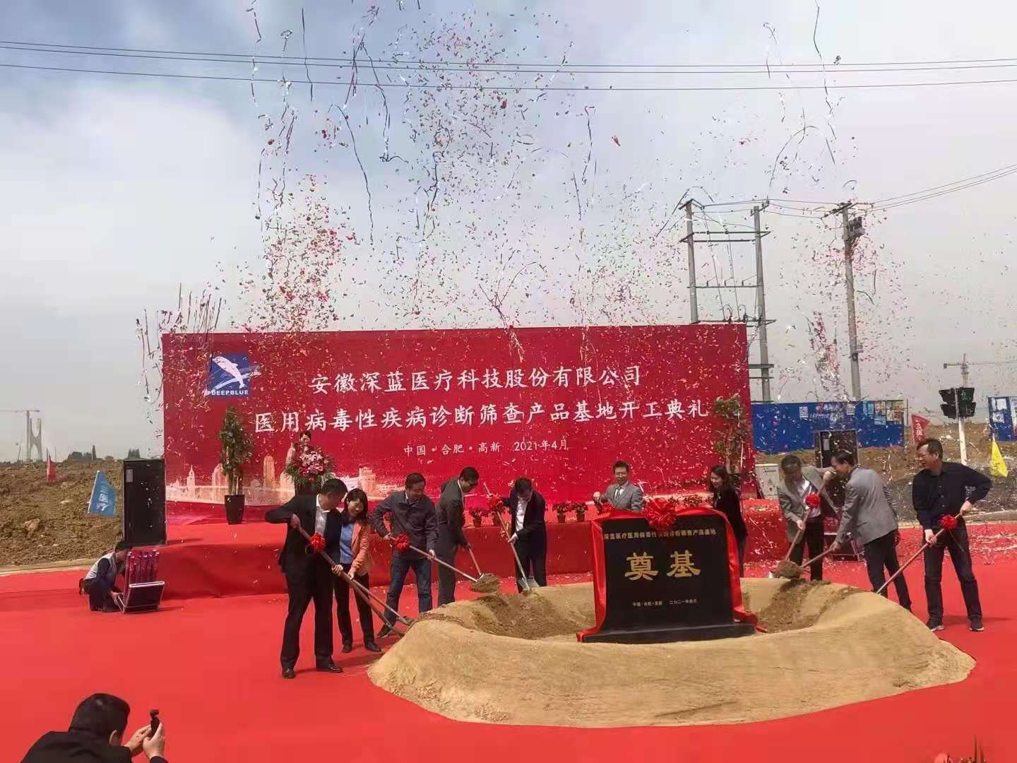 鑼鼓喧天,禮炮齊鳴,培土禮成!4月18日上午,深藍醫療病毒性疾病診斷篩查類產品基地項目在合肥市高新區舉行了隆重的開工奠基儀式,合肥高新區黨工委委員、管委會副主任劉登銀、合肥高新區投資促進局局長徐斌、合肥高新區建設發展局局長劉群及各有關部門的負責同志出席奠基儀式。