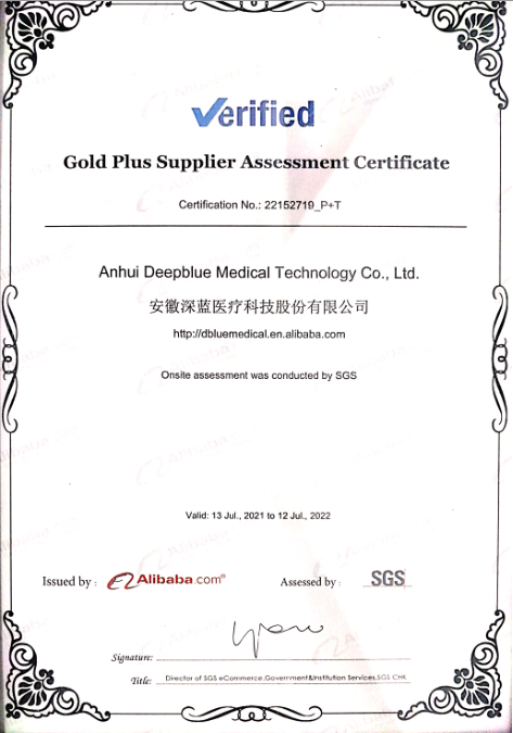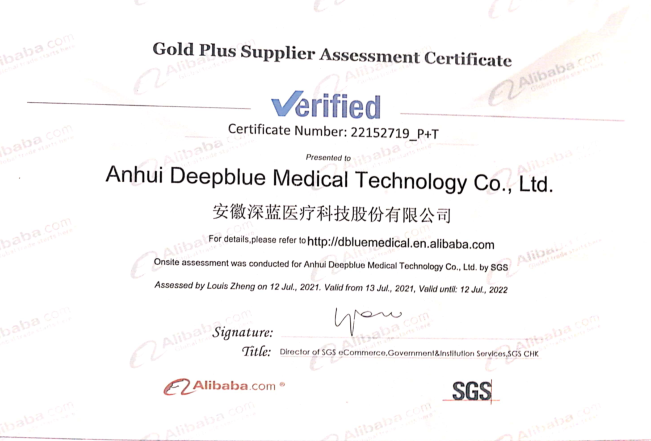 經過SGS全程嚴格地審核與評估,深藍醫療各方面體系符合阿里巴巴金品誠企標準的要求,成功通過認證,并于日前收到認證證書。
