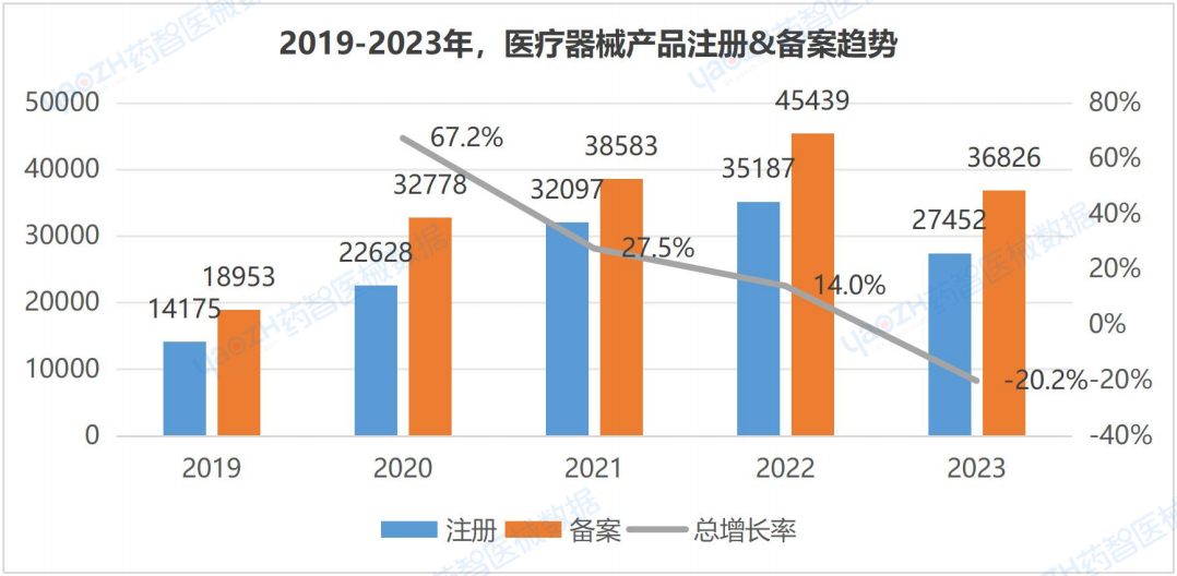 1.1 2019年-2023年醫療器械產品注冊&備案趨勢