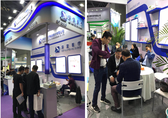 ??此次展會,安徽深藍醫療科技有限公司經過充分準備,預定了VIP展位,集中展示了我司的特色產品和專利產品,同時也帶去了我司新研發的產品——醫用冰帽和鐵蛋白檢測試劑盒,吸引了大量客戶的眼球,得到了廣大客戶的青睞和肯定。