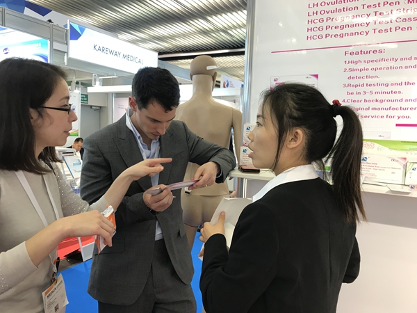 ??2018年11月12日至15日,2018年德國杜塞爾多夫國際醫療器械及設備展覽會(MEDICA2018)順利舉行,來自世界76個國家的4200家醫療公司參加了本次展會。安徽深藍醫療科技股份有限公司外貿部攜公司CE認證產品首次亮相,即得到了各國客戶的青睞,前來參觀和咨詢的各國采購商和專業觀眾絡繹不絕。在為期四天的展覽會上,深藍醫療展位吸引了眾多外商駐足,我司外貿人員始終以飽滿的熱情、耐心地與各國客戶進行溝通交流,共接待各國客戶近百人,本次展會不僅在國際舞臺上宣傳了公司產品,也加快了公司產品與國際的接軌。