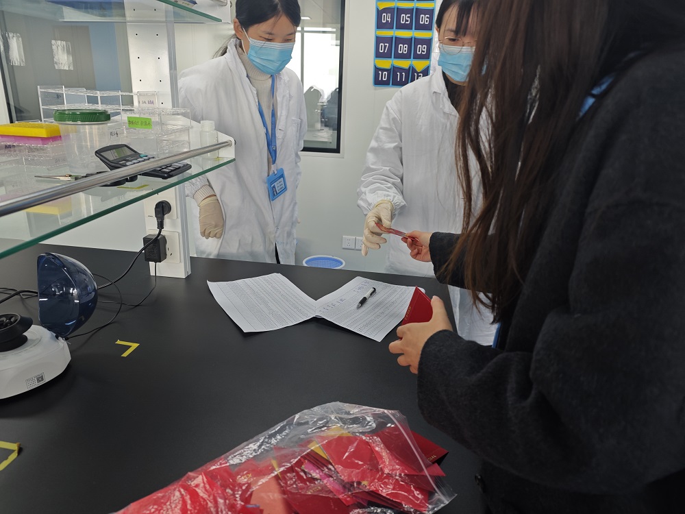 2月5日一早,行政人員早早做好了準(zhǔn)備,擔(dān)任“喜氣派發(fā)員”,穿梭在各個辦公區(qū)域和車間。送上新年問候之余,承載著祝福與期待的紅包飛入了每一位員工手中。每個紅包都經(jīng)過細(xì)心挑選與封裝,封入實實在在的心意的同時,更飽含著深藍醫(yī)療對員工在新的一年里工作順利、生活美滿的真摯祝愿。