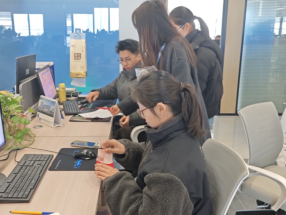 派發(fā)過程中,行政人員與員工親切交流,一句句貼心的話語,如同一股暖流,流淌在每一位員工心間,驅(qū)散了冬末春初的寒意,讓大家真切感受到深藍大家庭的關(guān)懷與重視。