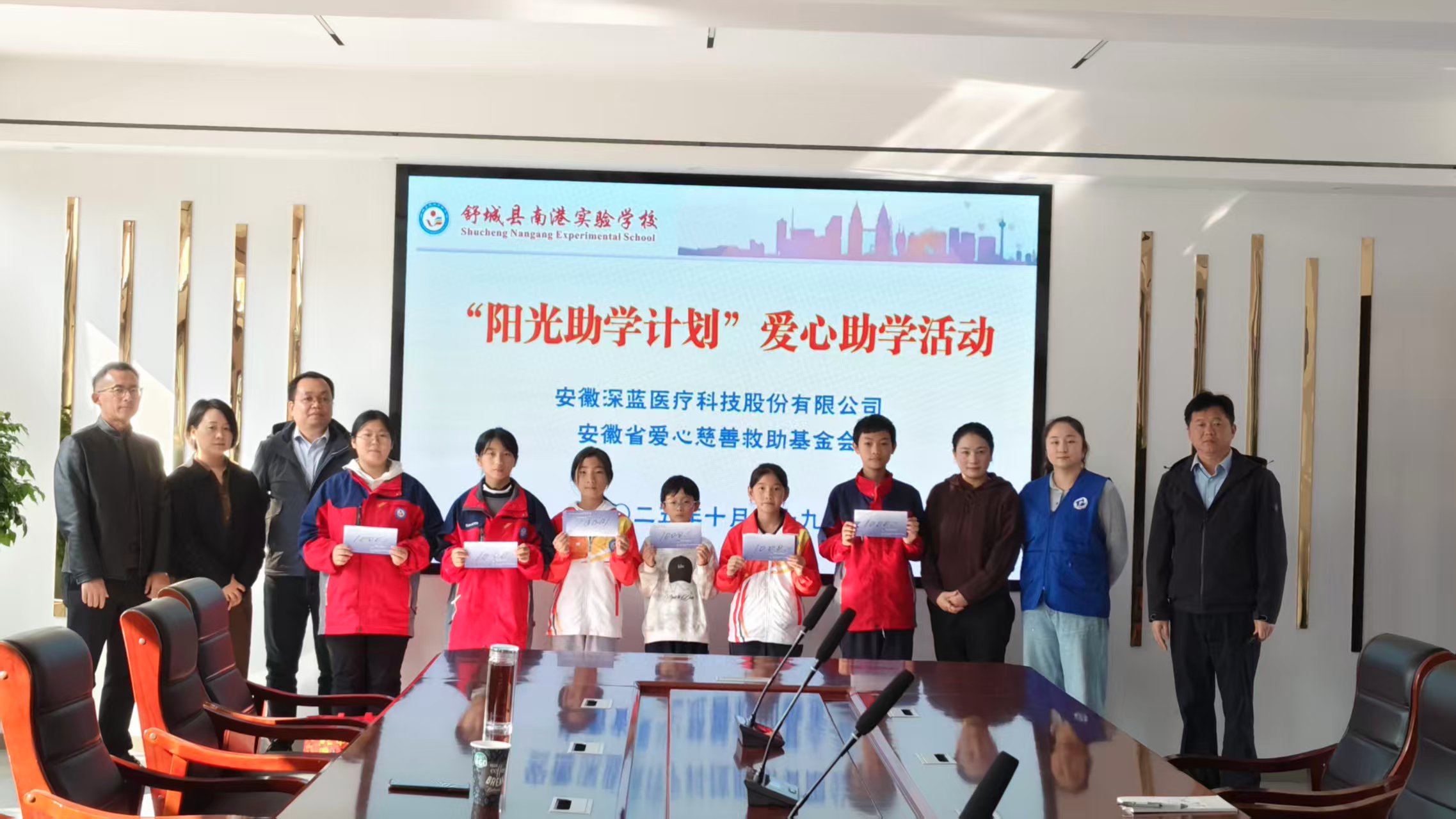 秋光和煦,暖意盈懷。2025年10月29日,安徽深藍醫療科技股份有限公司“陽光助學計劃”愛心團隊攜手安徽省愛心慈善救助基金會,走進六安市舒城縣南港實驗學校,一場兼具溫度與深度的愛心助學活動在此溫情啟幕。深藍醫療以實際行動踐行企業擔當,為逆境中的學子點亮逐夢之光,讓這個金秋更添暖意。
